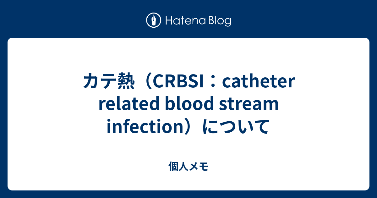 Healthcare infection control practices advisory committee : Usual pediatric dose for skin disinfection, preoperative. Nov 20, 2018 · ☆カテ熱(crbsi:catheter related blood stream infection)について ・カテーテル刺入部の排膿、発赤、圧痛あればすぐにカテ抜去(しかし、このような場合は稀)。septic shockの場合は感染源を疑うなら血培採取後、カテを入れ替えて広域の抗生剤(mepm+vcmあたり)、shockの治療に入る。血行動態が安定し. The outcomes of crbsi and cc were also assessed. Jul 17, 2017 · crbsi :